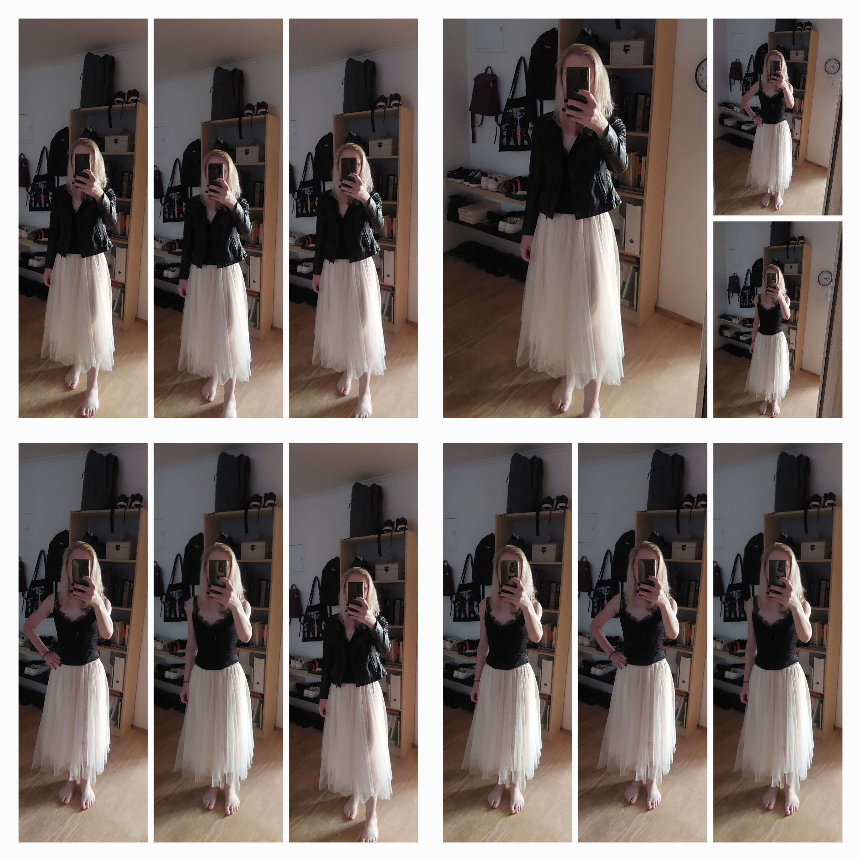 Vždy se snažím stylově se obléknout. První večer ještě panovaly vedra, proto jsem volila kontrastně tylovou sukni a k tomu černý korzet, který jsem si pro tyto účely pořídila.